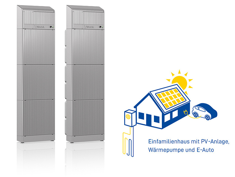 Der flexible DC-Hochvolt-Speicher für jede Anforderung: VARTA.wall BM1 für Innenräume, VARTA.wall BM2 für überdachte Außenbereiche.