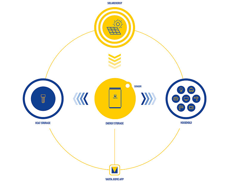Sector coupling refers to the networking of the home in order to use self-generated electricity for the heat pump and for the charging station of the electric car.